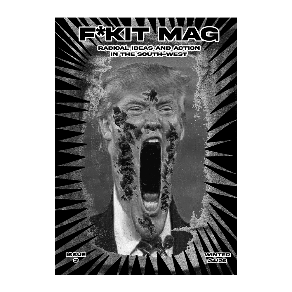 Fkit Mag is a new project from the South West of the WISE isles, combining original art and design, poetry, and theoretical and practical pieces from local activists. We include news and action reports, critical reflections, fiction, and autobiographical writing. Most of the articles are short-form, and we encourage submissions to be readable for a non-academic and non-activist audience.