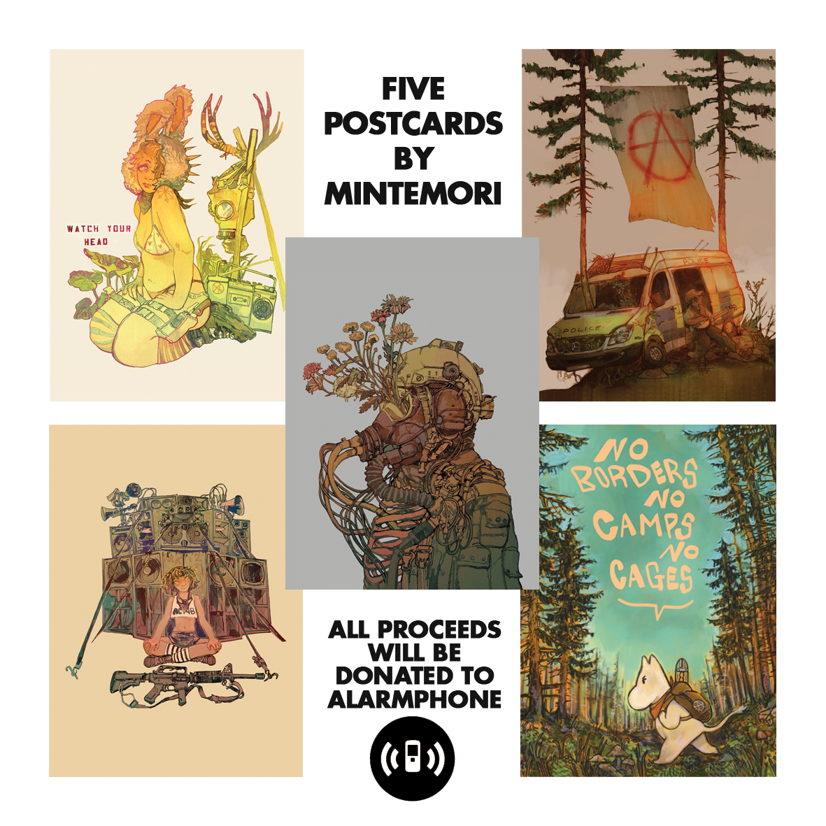 Series of postcards by artist Mintemori whose artowrk you can find here: instagram.com/mintemori